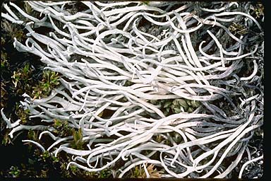 Thamnolia subuliformis is present on the dry beach ridge crests as fragments of whitethallus branches that appear to be effectively wind dispersed. Dicranum elongatumgr...
